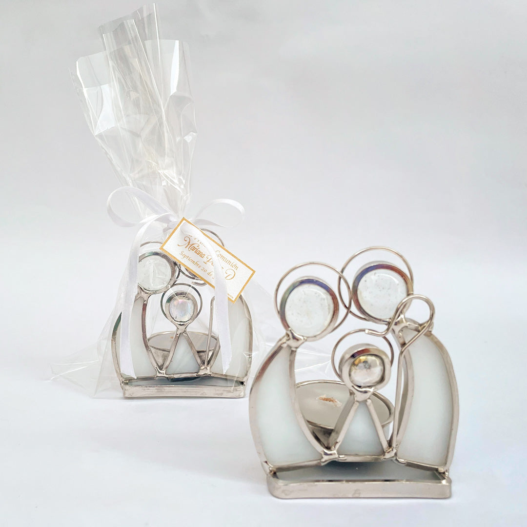 Este encantador candelabro de la Sagrada Familia, elaborado en metal con vitral, combina la tradición con un diseño moderno, creando una experiencia espiritual única. Con una altura de 7.5 cm, un ancho de 5.8 cm y una profundidad de 5.5 cm, esta pieza compacta pero impactante ilumina cualquier espacio con una luz celestial cuando se enciende la vela en la parte trasera.