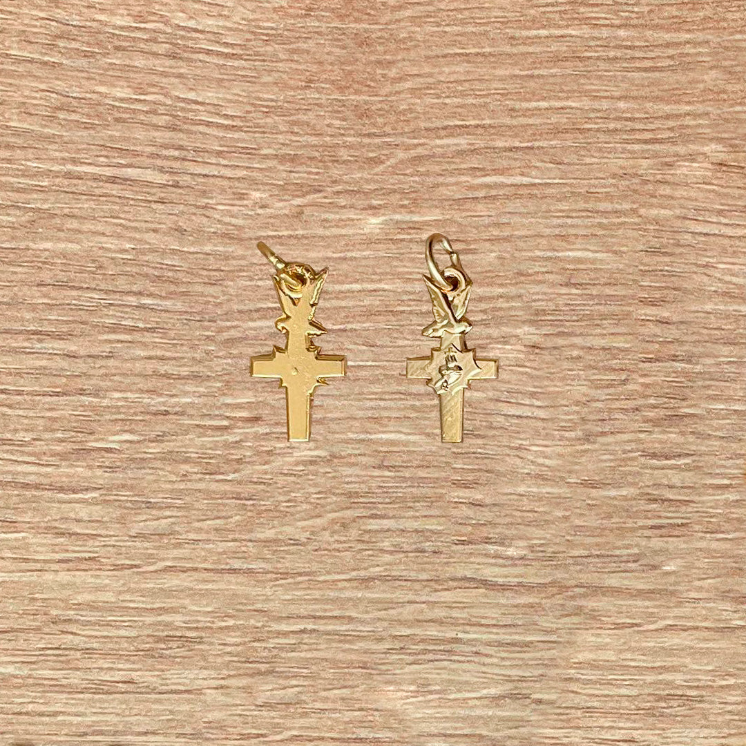 La Medalla Cruz Espíritu Santo, también conocida como Cruz del Apostolado, está hecha en zamak o alpaca italiana con baño en oro, ofreciendo una artesanía de alta calidad y un diseño significativo.