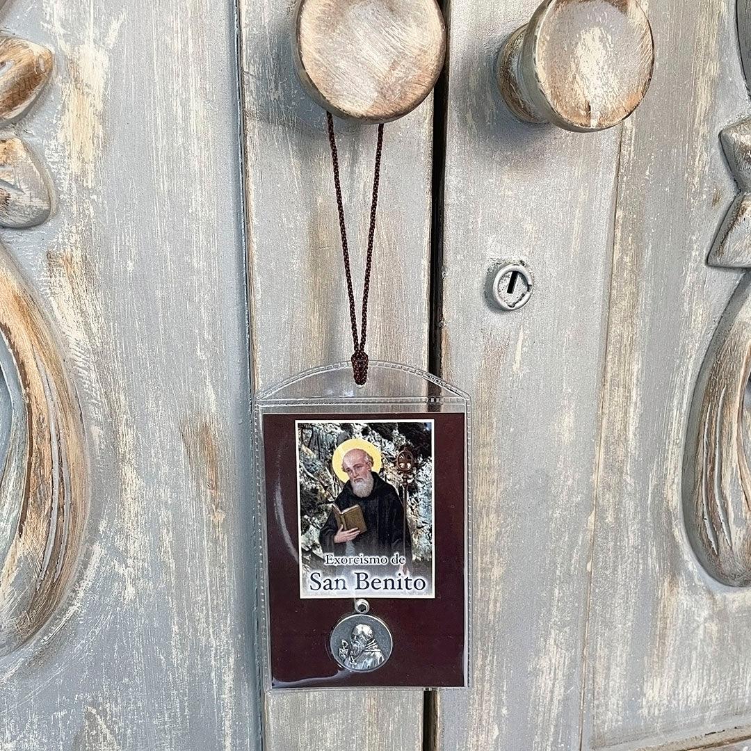 La lámina plastificada con la imagen de San Benito y su medalla es una poderosa herramienta de protección espiritual. Presenta una imagen detallada de San Benito junto con su medalla en la parte frontal, mientras que en la parte posterior cuenta con una oración dedicada al santo.