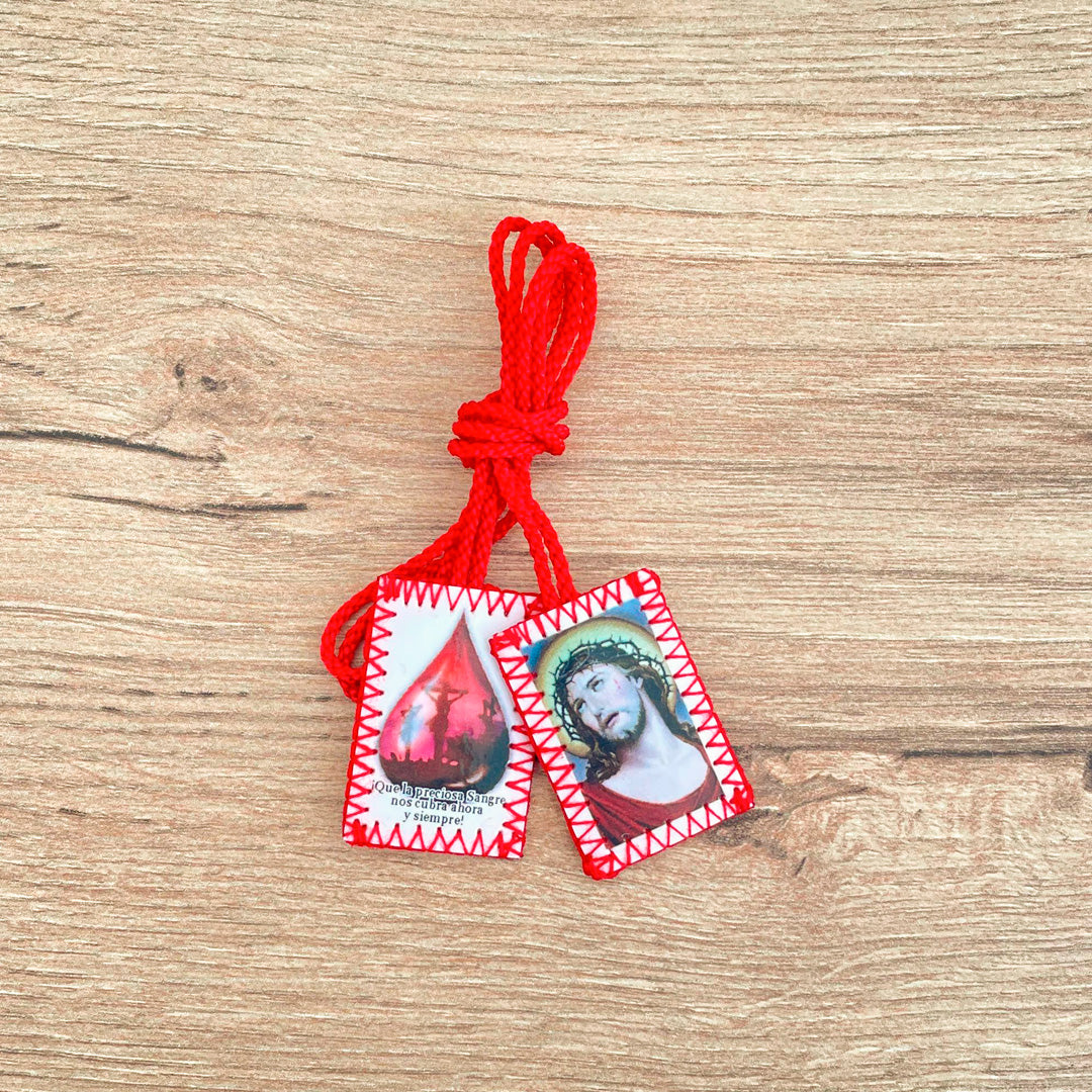 Este escapulario en paño lency bordado presenta una conmovedora representación de la Sangre de Cristo en papel fotográfico, combinando la tradición y la devoción en un accesorio espiritual significativo. Producido por VII Sacramentos, este escapulario refleja la calidad y el cuidado de nuestra propia marca.