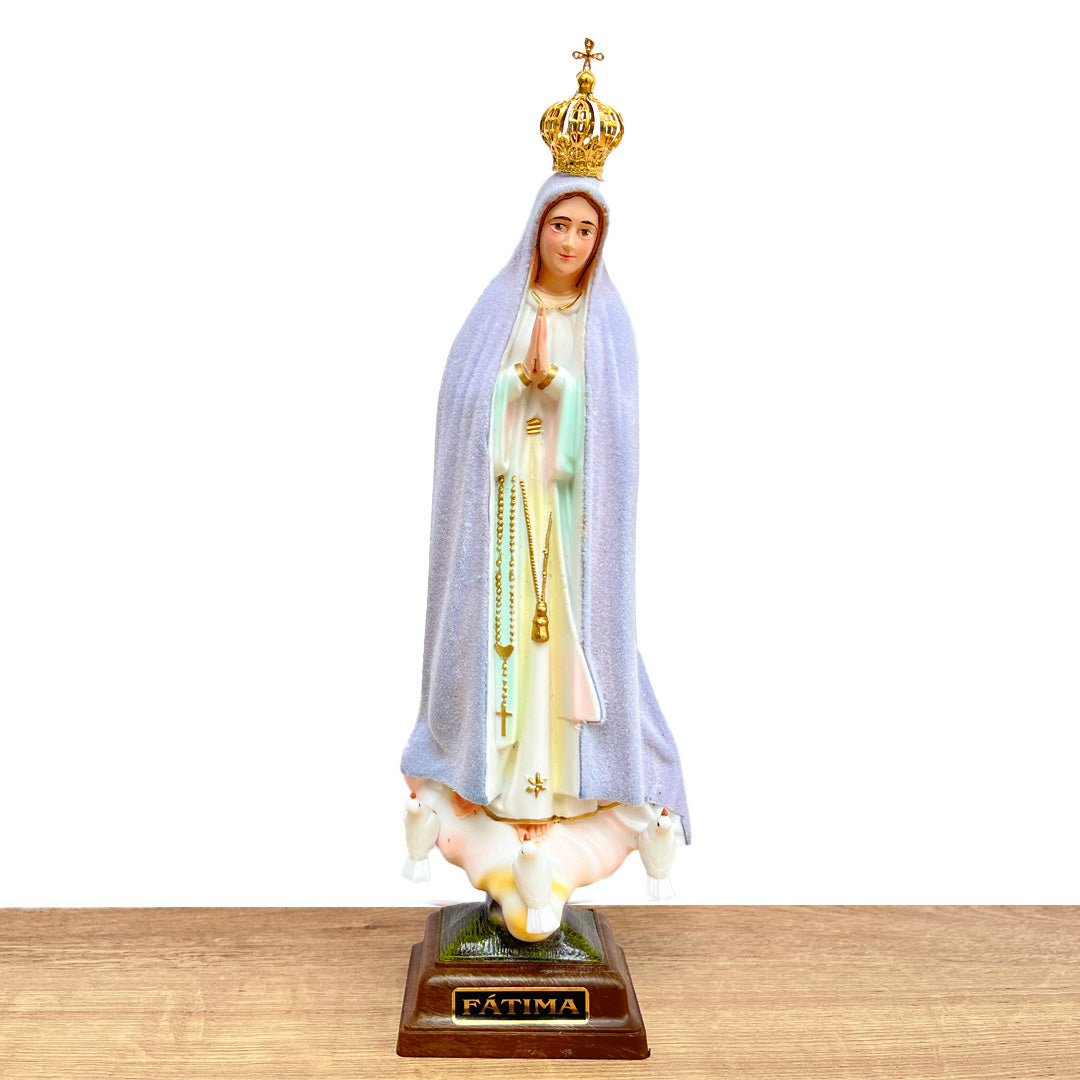 Importada directamente del Santuario de Fátima y distribuida exclusivamente por VII Sacramentos, esta estatua es un símbolo de fe y devoción, con un diseño distintivo que captura la esencia de la espiritualidad mariana.