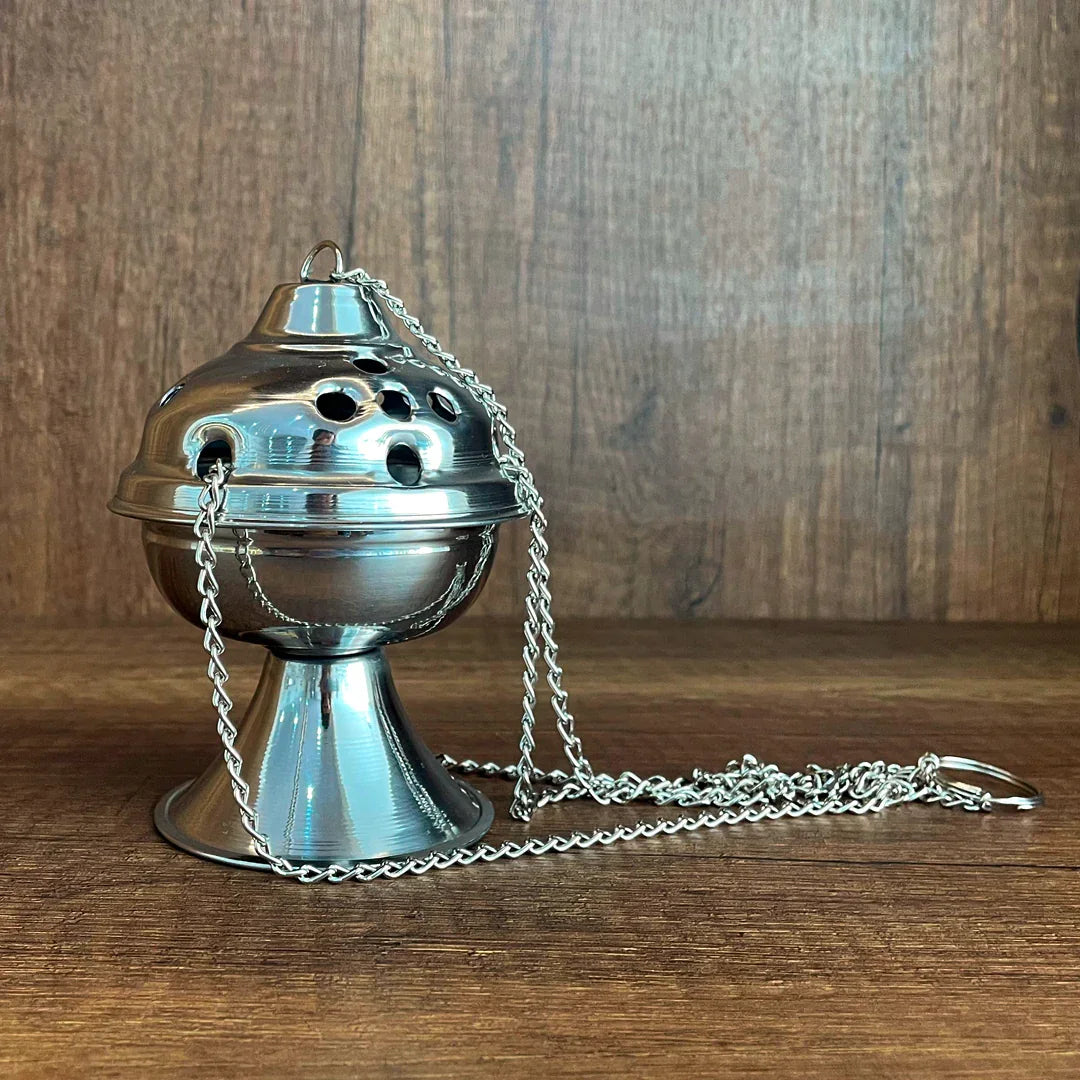 Este incensario de acero inoxidable es una herramienta esencial para tus momentos de oración y meditación en casa. Con una altura de 12 cm y un diámetro de 7 cm, este incensario está diseñado para quemar carbón e incienso, creando un ambiente de serenidad y devoción en tu hogar.