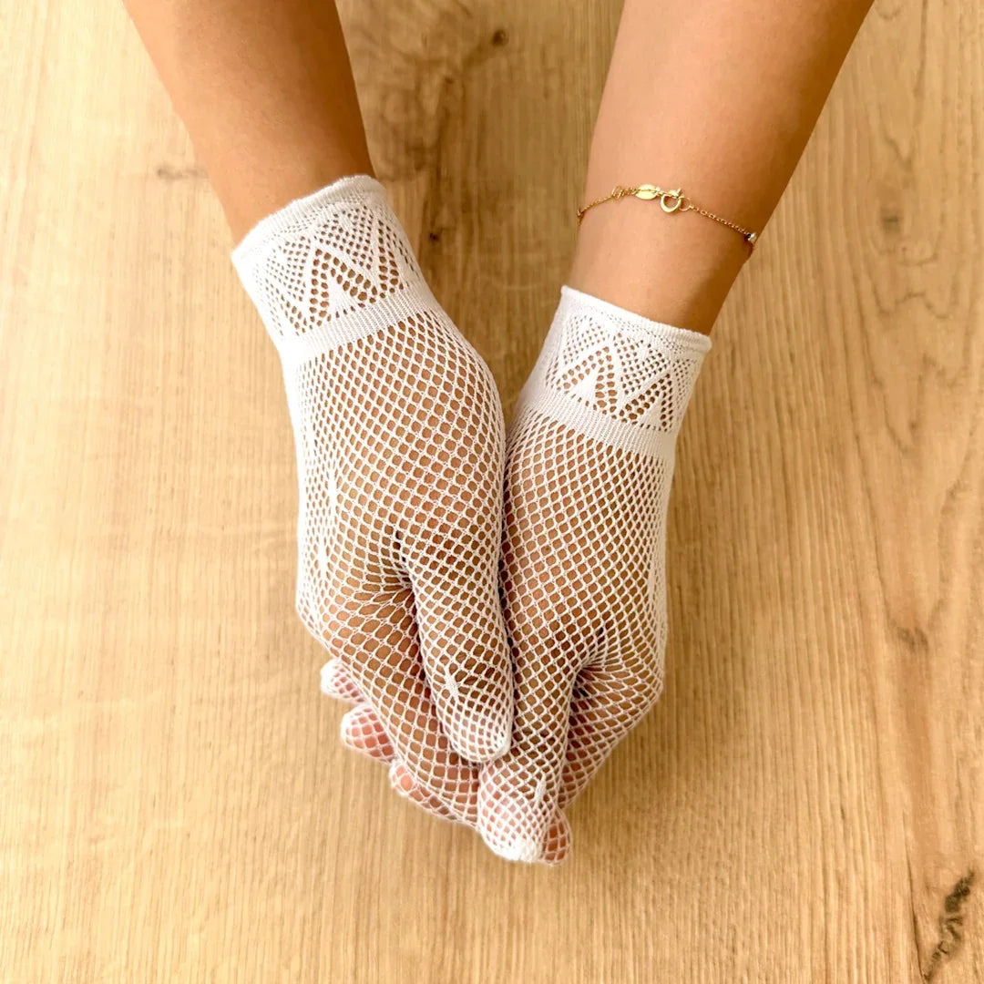 El Par de Guantes Blancos para Niña de Primera Comunión es un accesorio elegante y tradicional que completa perfectamente el atuendo de una niña en su día especial. Hechos en una mezcla de nilón y algodón, estos guantes de tela tipo media elástica combinan suavidad y elasticidad, garantizando comodidad y un ajuste perfecto.