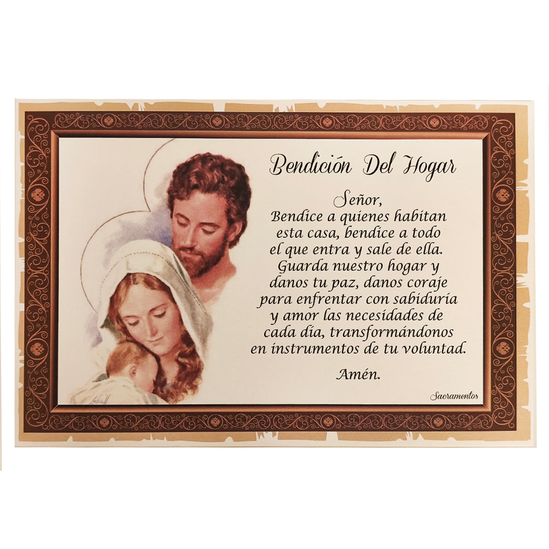 Esta encantadora lámina de oración de Bendición del Hogar está impresa en papel tipo cartulina, disponible en colores beige o blanco, y se despacha según disponibilidad. Con unas dimensiones de 20 cm de ancho x 13 cm de alto, esta lámina presenta la oración de bendición junto a la imagen de la Sagrada Familia, ideal para enmarcar o colocar en un portarretratos, convirtiéndola en un obsequio significativo o en un elemento esencial para cualquier hogar, proporcionando inspiración y protección diaria.