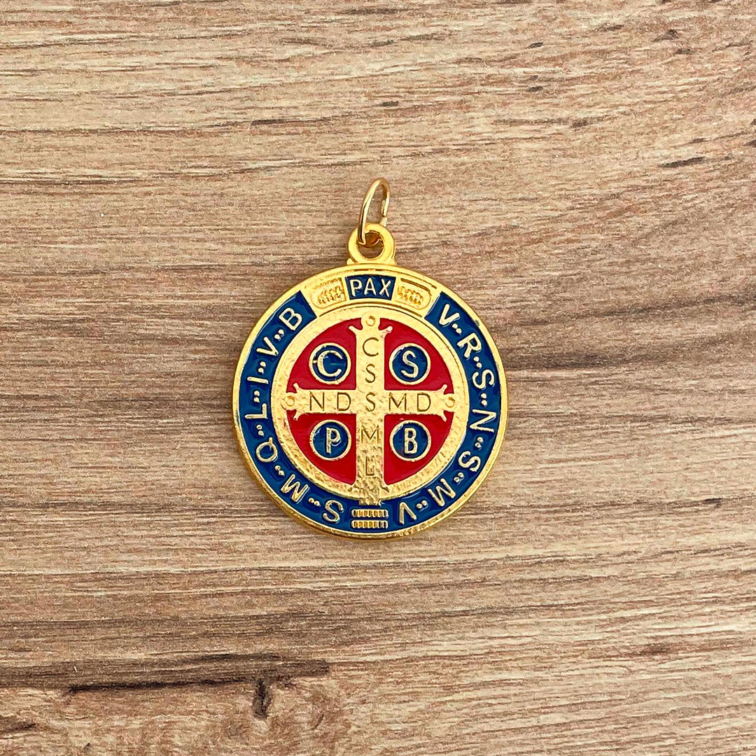 Destaca tu devoción con nuestra elegante Medalla de San Benito, elaborada en zamak con baño de oro y pintada con resina en vibrantes colores azul y rojo. Con un diámetro de 3.1 cm, esta medalla combina la durabilidad del zamak con un diseño colorido y significativo.