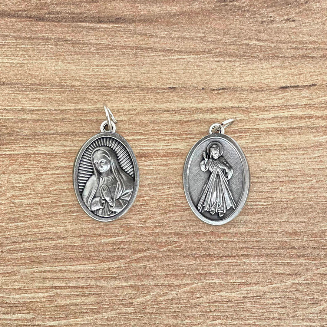 Refuerza tu fe con nuestra elegante Medalla Italiana de la Virgen de Guadalupe y Jesús de la Misericordia, elaborada principalmente en alpaca italiana, su diseño es ovalado de 2.5cm de alto x 1.5cm de ancho.