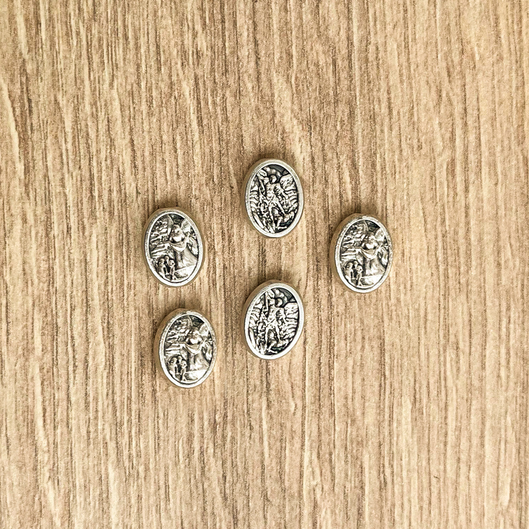 Embellece tu pulsera con nuestro elegante pasador de medalla italiana (Grano) de San Miguel Arcángel y el Ángel de la Guarda, elaborado principalmente en zamak. Con 1cm de alto y 0.8cm de ancho, esta medalla es ideal para montar como parte de una pulsera devocional, ofreciendo tanto protección espiritual como un toque de elegancia.