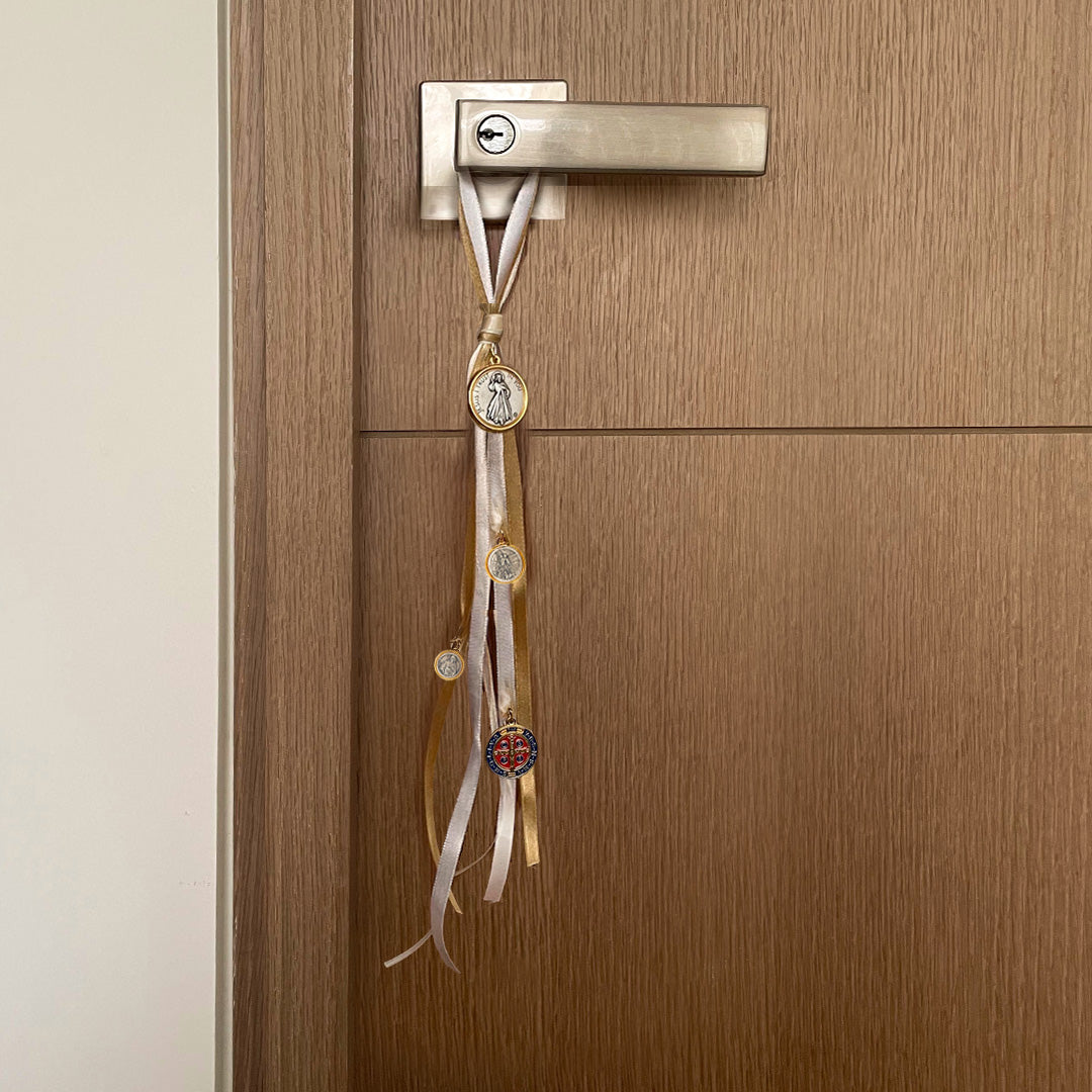 Las Medallas de Bendición y Protección del Hogar están diseñadas para brindar protección espiritual y bendiciones a tu hogar o negocio. Este set está compuesto por cuatro medallas italianas importadas, hechas en zamak y con partes doradas con baño en oro.