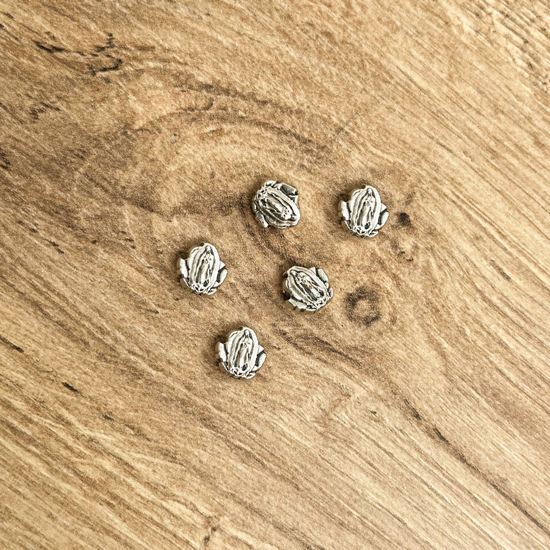 Embellece tu pulsera con nuestro elegante pasador de medalla italiana (Grano) de la Virgen de Guadalupe, elaborado principalmente en zamak. Con 0.8cm diametro con forma de Rosa, esta medalla es ideal para montar como parte de una pulsera devocional, ofreciendo tanto protección espiritual como un toque de elegancia.