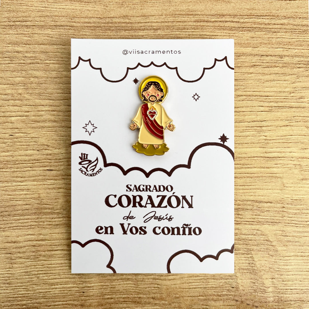 Este pin no solo es un accesorio religioso, sino un recordatorio de la infinita misericordia y amor del Sagrado Corazón de Jesús, ideal para regalar o como un símbolo de fe personal.