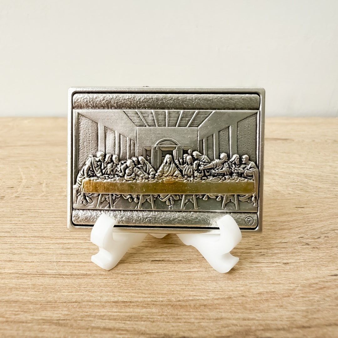 Revive uno de los momentos más significativos de la fe cristiana con esta placa aplique tipo oratorio que representa la Última Cena. La imagen, realizada con delicado detalle, muestra a Jesús junto a sus apóstoles en la mesa, recordándonos el misterio de la Eucaristía y el valor de la comunión.