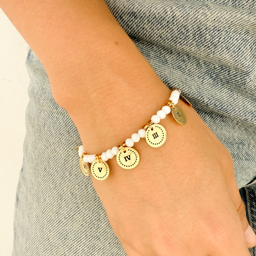 Uso: La Pulsera 10 Mandamientos es un elegante recordatorio de los principios espirituales. Con su diseño en nylon y muranos blancos, esta pulsera es tanto estilizada como significativa. Las 10 medallas grabadas permiten llevar los mandamientos siempre contigo, facilitando la reflexión y el compromiso diario con estos preceptos.