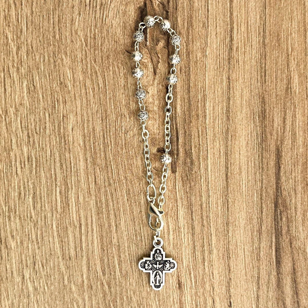 La rosa es un símbolo de pureza y amor, mientras que la Cruz de las 7 Gracias representa las bendiciones especiales otorgadas por la Virgen María a quienes rezan con fe y perseverancia. Esta pulsera no solo es un accesorio, sino también un recordatorio de la protección y guía espiritual de la Virgen Milagrosa.