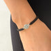 Pulsera está tejida en estilo macramé, con un diseño ajustable que se adapta cómodamente a cualquier muñeca. Cada lado de la pulsera mide 7 cm, y en el centro destaca una medalla de San Benito de 9 mm de diámetro. La medalla, disponible en alpaca italiana o zamak, ofreciendo una combinación de durabilidad y estilo. Perfecta como símbolo de protección y devoción.