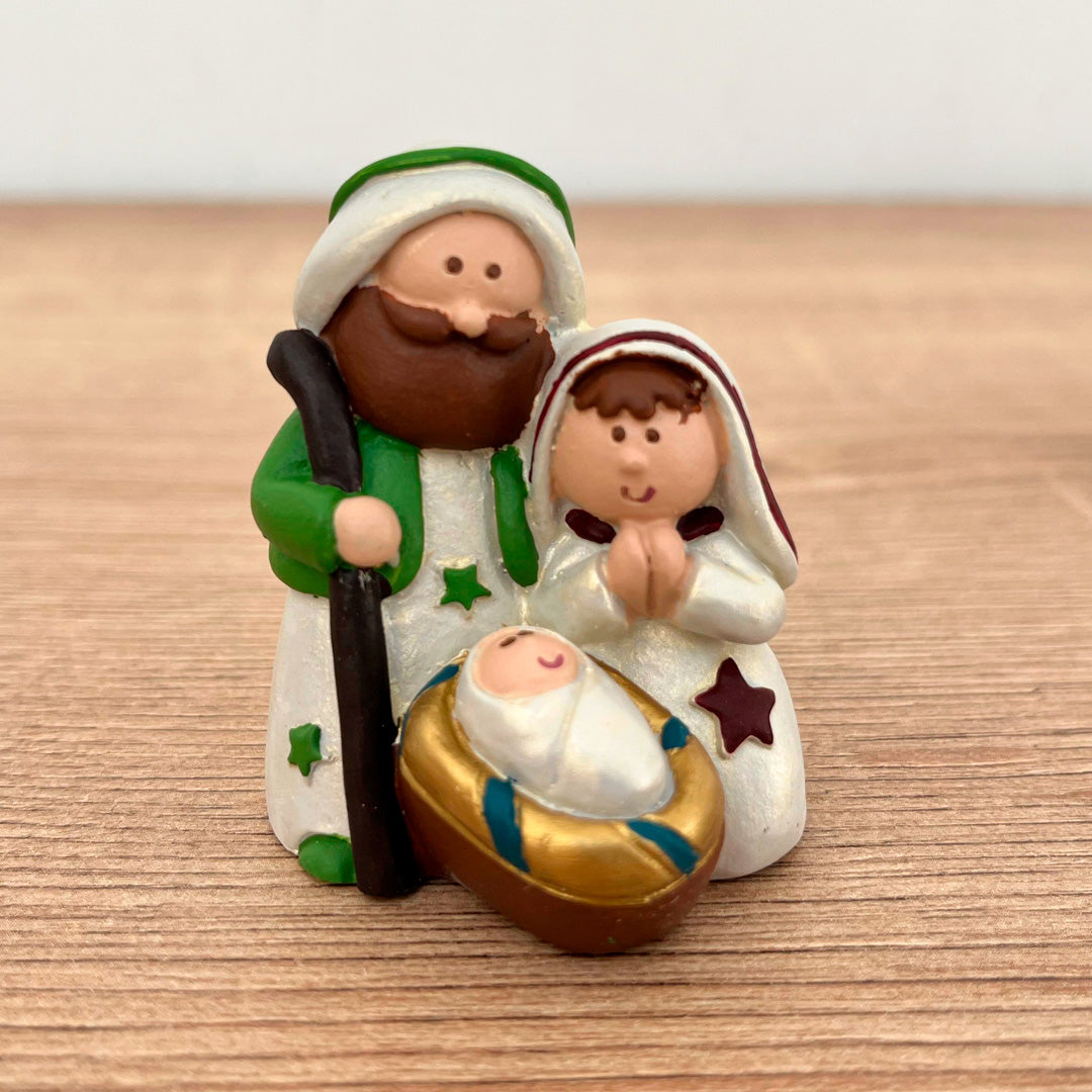 Con dimensiones de 5.5 cm de alto, 4.5 cm de ancho y 3.5 cm de espesor, esta estatua es ideal para colocar en cualquier rincón especial de tu hogar, ya sea en un altar, una repisa o como parte de la decoración navideña. Su diseño compacto y detallado la convierte en un regalo perfecto para aquellos que desean tener un recordatorio constante del nacimiento de Cristo.