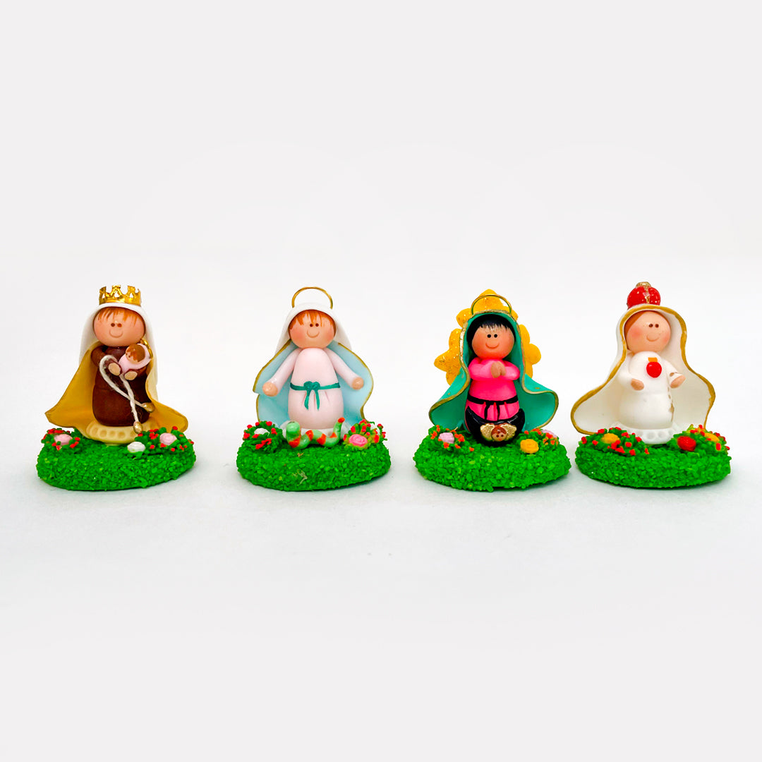 Disponemos de varias advocaciones, cada una representando una devoción particular y especial. Estas miniaturas son perfectas para coleccionar, regalar o decorar un espacio con un toque espiritual.